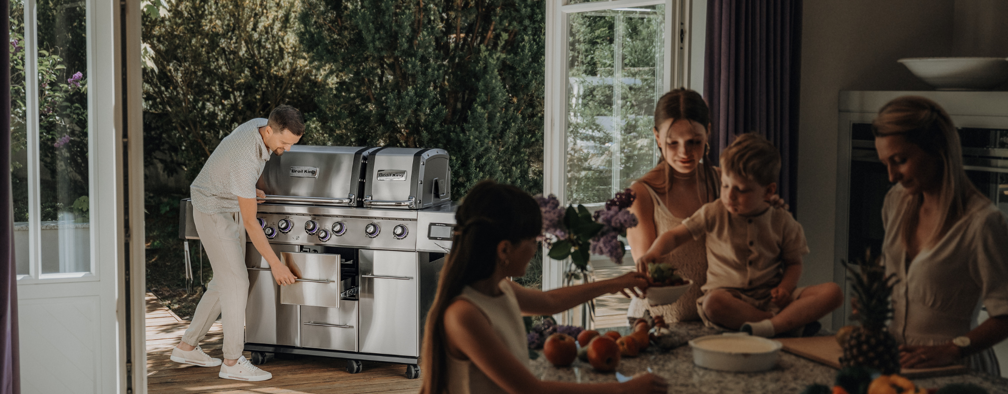 Broil King® Crown™-serien erbjuder både kraft och prestanda i en mängd olika format för att passa entusiaster av matlagning på grillen. Crown-serien har detaljer i kvalitativt, rostfritt stål såsom kontrollpanel och handtag.