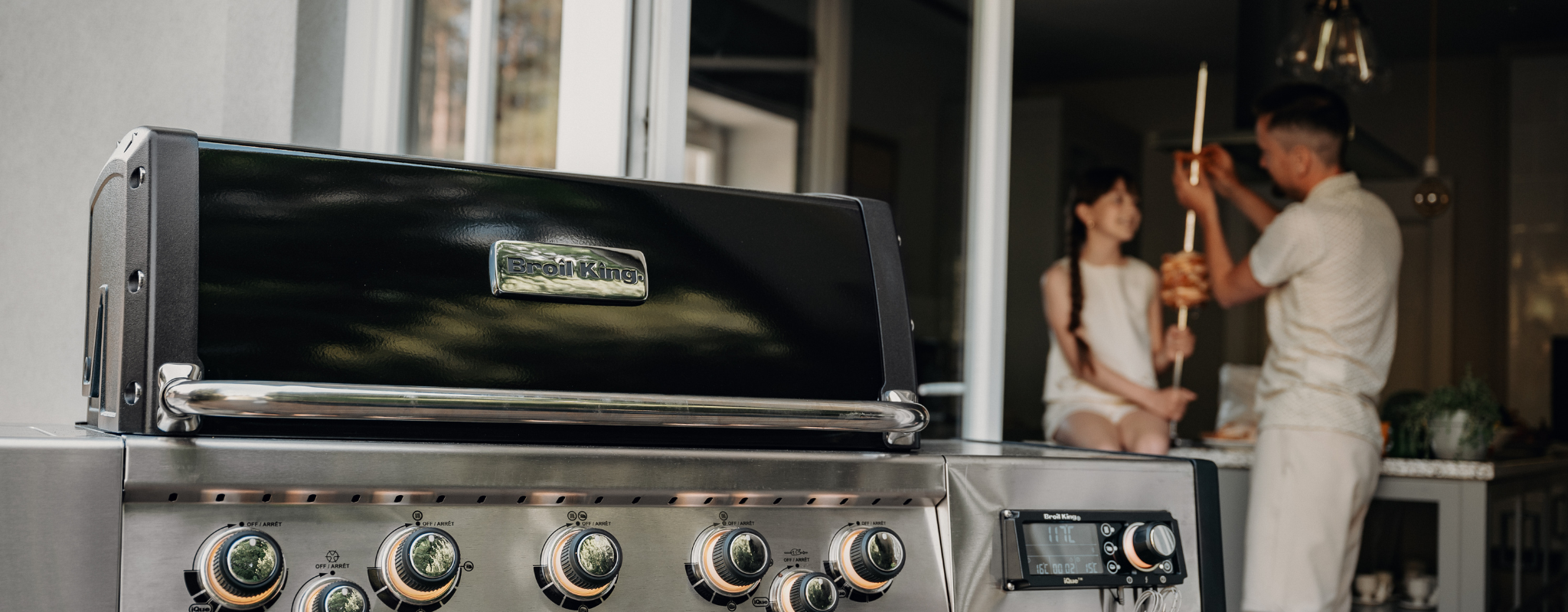 iQue från Broil King® – revolutionerande grillkontroll med ett knapptryck. Den patenterade iQue™-teknologin justerar automatiskt värmen för perfekt resultat oavsett väder. Grilla, röka eller ugnsbaka – styr allt via kontrollpanelen eller iQue-appen för Apple och Android.