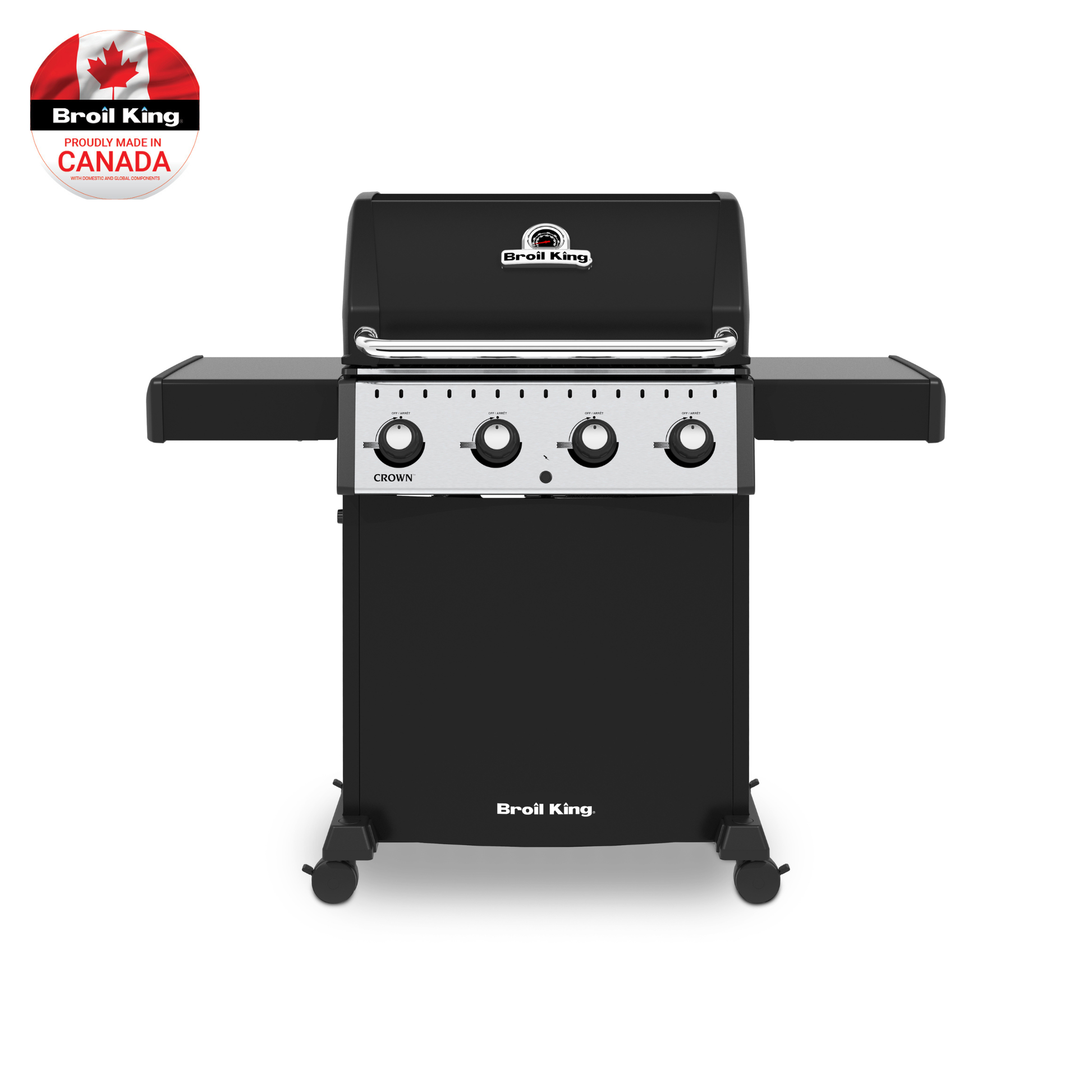 Den nydesignade Crown-serien är tillverkad med förbättrade material som grillbox i gjuten aluminium och lock i emaljerat stål/gjuten aluminium. Detta ger bättre värmeisolering och ökad hållbarhet. Grillen är utrustad med fyra brännare i rostfritt stål och har en total effekt på imponerande 12,4 kW.
