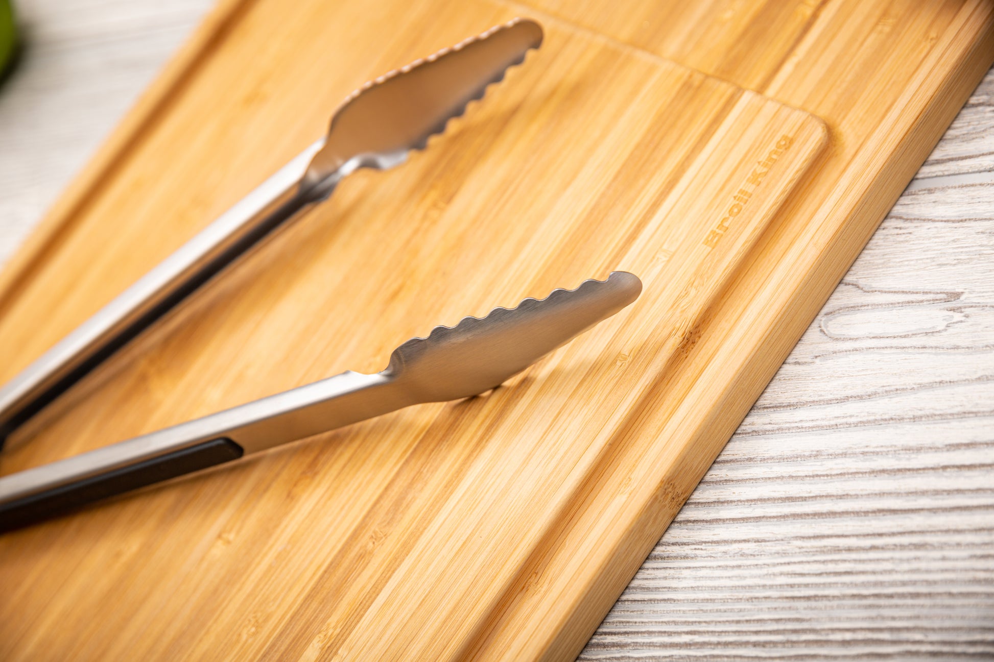 Skärbräda Regal™ från Broil King är en stor och robust skärbräda tillverkad av bambu, speciellt utformad för att skära och servera tillagat kött och förbereda grönsaker. Med en extra bred uppsamlingskanal som fångar upp vätska och en hällpip för enkel avrinning, är denna skärbräda idealisk för både grill- och köksentusiaster. Skärbrädan mäter 45 x 31 x 2 cm och har gott om utrymme för matberedning och servering.